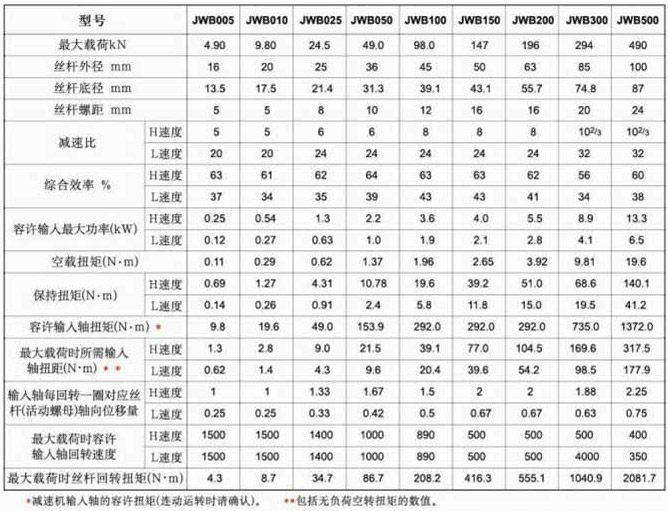 JWB滾珠絲桿升降機(jī)基本型號(hào)參數(shù)表